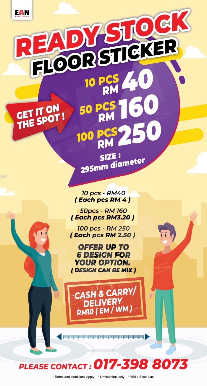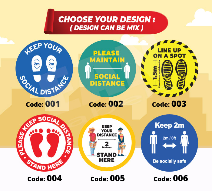 Social Distancing Floor Stickers can be used as one of the protective measures during pandemic phase. In addition, floor stickers can also be used as a label marking for factories as area dividers or safety purposes etc.